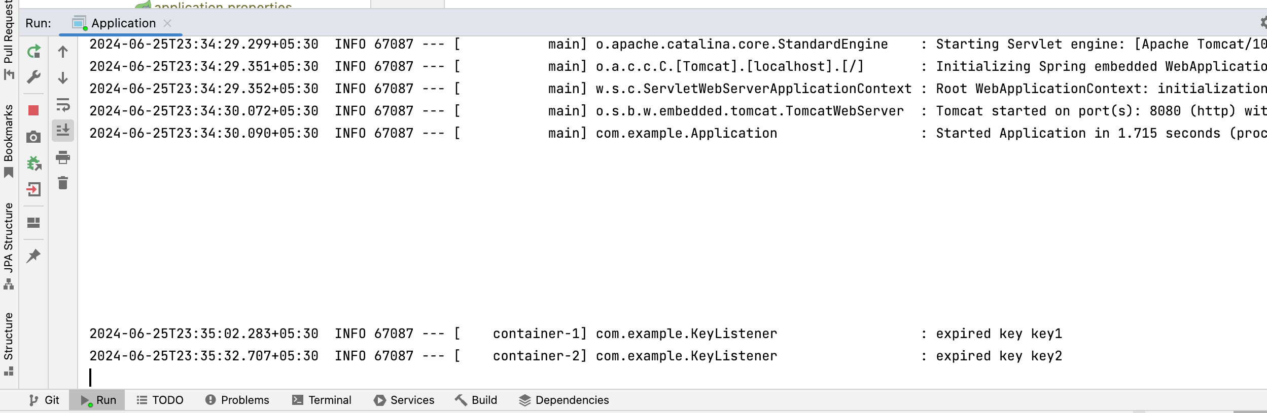 Screenshot of expired keys logged in spring boot application